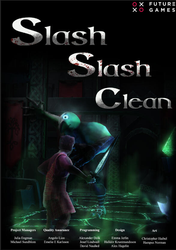 Slash Slash Clean is a hack n’ slash game where you control a character known as the Chosen One, who stumbles upon a magical talking sword obsessed with cleanliness.In the game you, together with your nagging sword, must make your way through a procedurally generated dungeon in order to find and defeat the Raven Lord!